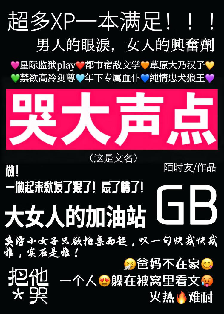 ![]() 单元文,预收,存稿中 世界一:星际 【新来的典狱长 x 监狱刺头】 星际最高层级监狱里,最让狱警们头疼的就是那个刺头顾渊。 不服管教,野性难驯,死性不改。前脚刚领了几百伏特的电击惩罚,后脚就在餐厅一脚把新来囚犯踹成内出血。 直到旧典狱长退休,联邦派来了个新的典狱长。 新典狱长看着温温和和,结果来的第一天就当众将顶撞她的顾渊拖到了受罚室。 众囚犯对此不以为然,坚信什么惩罚对大哥来说不痛不痒,必然不会就此屈服。 确实如此,即使最后顾渊是被人抬着回房间的,但表情仍然十分不服气,俨然并未有一丝悔改的迹象。 但随着顾渊去受罚室次数的增加,事情好像有点不对劲了起来。 众囚犯惊恐地发现他们的大哥脾气居然越来越好了,就连有人不知死活胆敢挑衅他,顾渊都没动手。 而且更加让人惊恐的是,有人发现顾渊从受罚室出来时,眼睛周围是红的,显然刚哭过一场。 这个令人毛骨悚然的发现让他们大惊失色,纷纷猜测那位可怕的典狱长究竟是动用了什么禁用的私刑才让顾渊这样的人都痛到哭出来。 在他们义愤填膺又苦于无处投诉,转而愤愤努力做工争取早日出狱,监狱莫名其妙变成一副欣欣向荣的场面时。 顾渊正在受罚室,被迫抬起头。 “哭大声点。”那位典狱长用指腹擦去他眼角的泪痕,不轻不重拍了拍他的脸,“我没听见。” 世界二:现代 【对家女总裁 x 破产少爷】 被收留,被欺负哭还要给她准备爱心午餐 世界三:古代 【中原女将军 x 草原可汗】 成为战俘,为她暖床更衣,委屈哭泣 世界四:仙侠 【女魔尊 x 无情道剑修】 遭受天劫被她好心带回去疗伤,被残余力量影响稀里糊涂滚到一起,无法抵抗屈辱到哭 世界五:西幻 【始祖血族女长老 x 吸血鬼猎人】 没打过,成为她的专属血仆,一边被吸血一边流眼泪 世界六:兽人 【女猎人 x 昔日狼王】 受伤被新狼王赶出族群,被猎人捡回去,天天害怕被杀掉忍不住哭 食用指南: *爽文合集,每个世界都是男处,1v1,he。 *女主均无挂件,无任何生子情节,纯正gb。 吃有挂件设定的同类型指路专栏《标记高冷Omega少将后[gb]》,女A男O,墙纸爱狗血文。 |