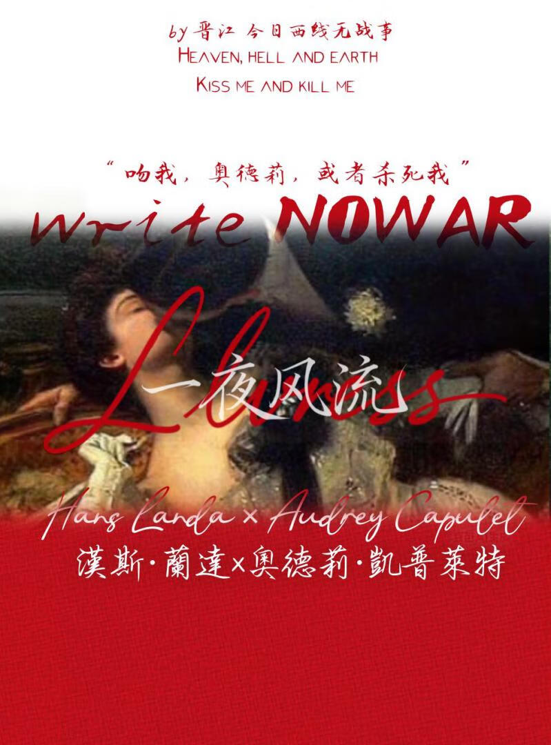 ![]() “她的囚笼,亦是他的地狱” “杀了我,或者吻我,奥德莉” “仁慈的父我已坠入,看不见罪的国度” 利己主义党卫军上校×中法混血卧薪尝胆少女 注:本文禁代入!禁抄袭!禁拿去代餐! 书名相关:本书《一夜风流》,又名《锁情》 ——故事简介—— 奥德莉的十三岁,孽缘的开端 汉斯·兰达从花园的那一眼就知道,这只是个开端…他会想尽一切办法夺走这个孩子 于是他亲手覆灭了她的家族,让她无所归依,只能逃亡 直到奥德莉十六岁成年那天,他们重逢了,那是属于上位者的不动心 他施强取豪夺,将法兰西最后的白山茶豢于笼中,却不曾想,这朵纯白无暇的花儿也带着荆棘… 被覆灭家族的奥德莉,对兰达毫无爱意,只有满腔怒火 她发了毒誓,要把这个害她家破人亡的男人送上绞刑架… ——排雷—— 男女主相差28岁 畸恋,写这本书的时候大量参考了《烈火情人》 不是长篇小说,剧情比较紧凑 |