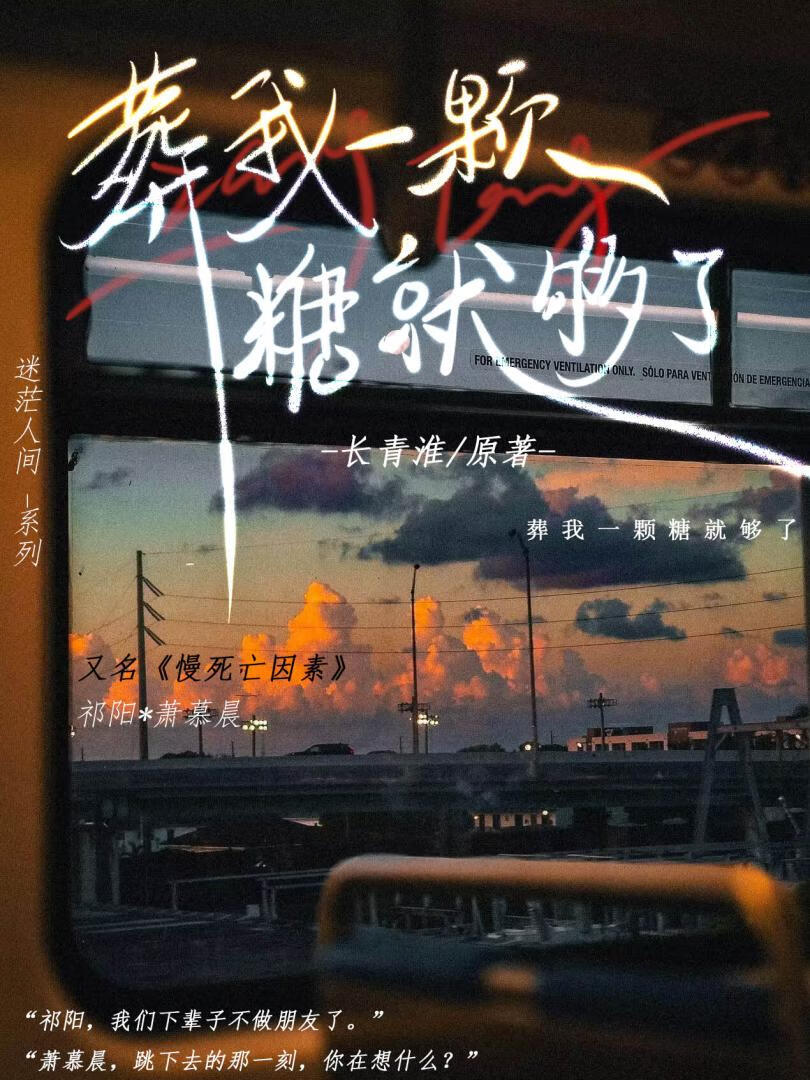![]() 【已授权非商业广播剧十二时画制作组】 段评已开,欢迎来玩! (如果喜欢的话记得点点收藏啊!)顺便看看孩子其他作品可以嘛QAQ) ——25/6/6 正式开文 《葬我一颗糖就够了》by长青淮 (建议搭配BGM《爱人》食用) “你知道我为什么要一颗糖吗?” “因为那样我大概会忘记,我们的爱是痛苦的。”——文案 又名《慢死亡因素》(一视角) “你是造成我慢性死亡的唯一因素” ——(BE哈BE,死了一个QAQ) 简介: 确诊了,胃癌晚期。 我一身病号服站在门口,低头看着和他的聊天记录,看了好久。 我想让他来陪陪我,他没回消息。 ……他大概在忙吧。 我摁熄了屏幕,还是什么都没说。 他不知道也挺好的。 …… 可他不知道从哪里知道了我的事,之后,他问我: “死了想让我葬你什么?” ……我知道,比起关心,这更像是诅咒。 可我还是回答: “一颗糖,可以吗?……” …… “谢谢。” 【祁阳x萧慕晨】 【一中高冷校霸·攻x一中闷骚学霸·受】 “祁阳,我们下辈子不做朋友了。” “萧慕晨,跳下去的那一刻,你在想什么?” ——25/6/21 正文完结啦 全文完结,欢迎评分~ |